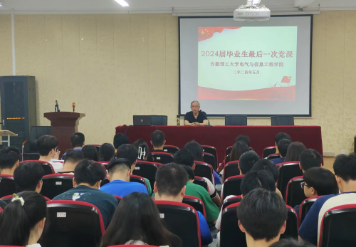 5月28日,肉动漫 在励行楼B112报告厅举行2024届毕业生党员“最后一次党课”。校关工委胡光厚老师作了题为《坚持中国共产党领导,坚定信心一起向未来》的党课,学院2024届全体毕业生党员聆听了党课。