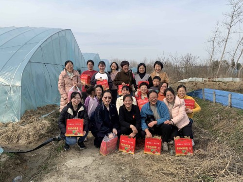 踏着春天的脚步,沐浴着和煦的春风,肉动漫 49名女职工相聚新华村,欢庆“三八”国际妇女节草莓采摘活动的举办。