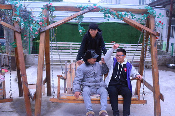 11月24日上午,团队成员一起来到淮南敬老院,与耄耋之年的老人们交流互动。志愿者们有的陪老人聊天,听他们讲述自己的人生经历,深受教育和启发;有的陪老人荡秋千、做游戏、猜谜语,带给老人们开心和快乐;有的伴在老人身旁,亲切问候,嘘寒问暖,让老人们享受到家人般的温暖。待到老人们开始午餐时,志愿者给他们端盘端菜,看着他们都吃上了可口的午饭。