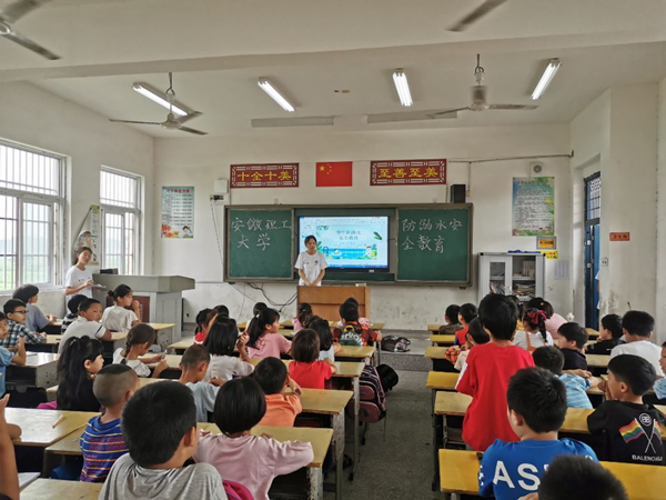 生命健康重于山,安全一课记心间。随着暑假的来临,学生溺水的事故也进入高发期。为全面提高学生的自防自救能力,有效预防溺水事件发生,7月13日上午,志愿者们给63位小学生上了一堂别开生面的防溺水安全教育课。在课堂上,他们采用边讲解边提问的方式进行,以加深孩子们对防溺水安全知识和逃生技能的理解和掌握。来自五年级的徐子娴同学说:“通过大哥哥大姐姐的讲解,我对预防溺水的措施、溺水时的自救方法和发现有人溺水时的救护方法有了更全面的认识,我保证以后一定再也不一个人去池塘边玩耍了。”