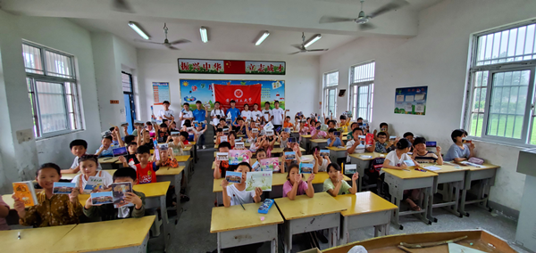 精神世界需引领,一本好书似航船。孩子们的世界需要书的陪伴,那是他们了解世界的良师,是他们人生成长的益友。为了给孩子们的小世界多一分童年美好的回忆,志愿者们精心准备了50多本漫画书和文摘两类书籍增送给孩子们。有的孩子拿到书籍后,就开始认真的阅读起来了。志愿者孙嘉宝说:“看到同学们这么喜欢我们为他们挑选的书籍,我觉得做这一切都是值得的,以后每年暑假有这样的机会都会去参加的。”