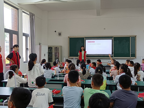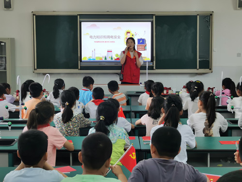 电力科普话安全。国网淮南电力公司志愿者为小学生讲解电力科普知识,让小学生了解电是如何产生的以及日常安全用电相关注意事项等内容,以幽默风趣的语言、轻松活泼的方式,让同学们了解基本用电安全小知识,增强他们安全用电的意识。