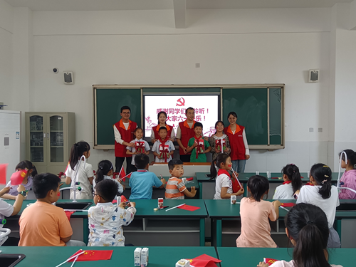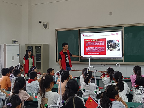 党史宣讲聚人心。为了帮助小学生们更好的学习了解党的光辉历史,电信学院的志愿者还开展了党史宣讲活动,志愿者带领孩子们重温狼牙山五壮士、刘胡兰等经典红色故事,并邀请同学们分享自己读过的党史小故事,分享自己在这些故事里的所感所悟,激发他们内心的爱党爱国之情。