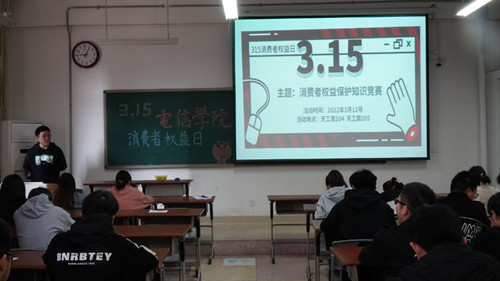 在第40个“3.15国际消费者权益日”来临之际,3月12日,电气与与信息工程学院开展“3.15国际消费者权益日”系列活动,通过活动宣传、法律普及、知识竞赛等方式让师生了解相关维权知识,切实增强维权意识。