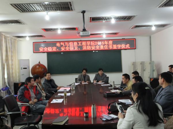 4月14日下午,学院在三楼会议室举办2015年度安全稳定、安全保卫、消防安全责任书签订仪式。学院党政领导、各单位负责人、研究生导师、学生辅导员、学生代表等40余人参加签字仪式;仪式由院长李敬兆主持。
