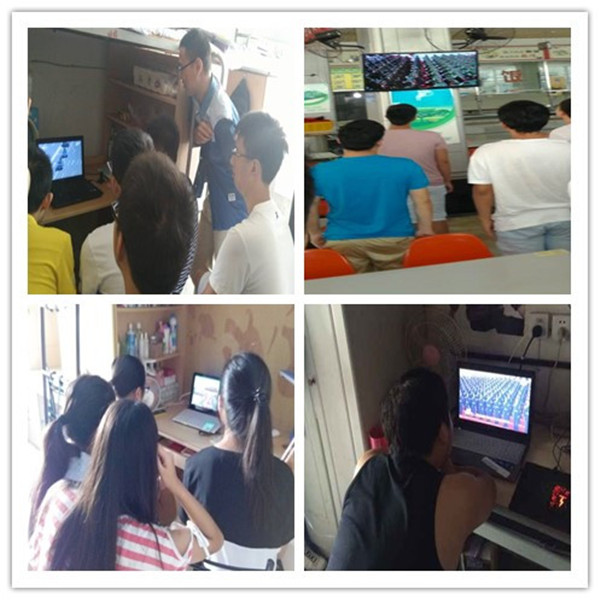 直播结束后,师生们仍迟迟不愿离去,他们还在热烈的讨论着阅兵式中的精彩场景,分享着自己的心得和感悟,12级电气专业徐孝萍同学在QQ说说中深情写到:看大阅兵,热血沸腾,身为中国人而感到骄傲,革命先烈的奋战和牺牲才有我们今天这样的生活,祖国伟大,人民伟大,祖国会越来越强大!13级自动化周瑞吉同学更是激动的说,“阅兵式是一个国家实力的最好展现,阅兵式上那么多先进的装备都是国产的,这令我非常自豪!为中国创造加油”。