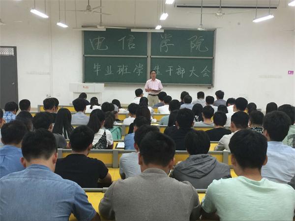 为加强对毕业班的教育管理,引导毕业生安全、文明、有序做好毕业前各项工作,5月16日晚,学院在明理103教室召开2017届毕业班学生干部大会。学院党委副书记徐关怀,毕业班辅导员和全体毕业班学生干部参加了会议。