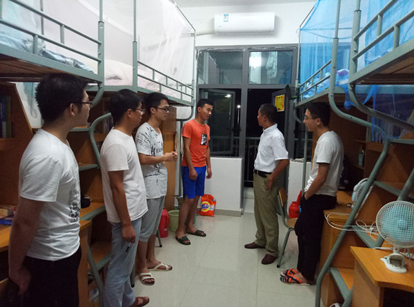 为了解开学初学生动态,引导学生及时收心开始新学年的学习生活,8月27日晚,学院党委副书记徐关怀带领各年级辅导员,深入学生宿舍走访、看望学生,了解返校学生动态。