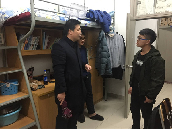 检查组首先就安全管理方面与宿管人员进行充分沟通,逐个走访各年级学生宿舍,重点检查在宿舍卫生、违章用电等方面的问题。每到一间宿舍,向同学们强调安全用电、防火、防盗、宿舍卫生整理等方面重要性和必要性。同时,对学生们的思想动态、学习生活情况进行细致了解,关切询问是否存在生活、学习困难,提醒和勉励学生做好复习迎考工作,确保以良好的状态顺利迎接期末考试。
