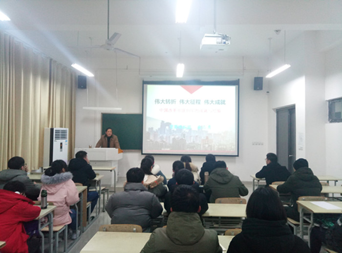 2019年1月5日,校党委组长部部长娄志勇为实践团学员们讲授“改革开放40年的辉煌成就”,以庆祝改革开放40周年大会为切入点,向学员们传达习近平总书记在庆祝改革开放40周年大会上重要讲话精神,以“伟大转折、伟大征程、伟大成就”三个篇章,阐释中国改革开放40年的成就与经验。鼓励各位学员在学知识、长见识、提修养、强本领上下功夫,把个人理想融入国家发展伟业,勇扛时代责任,激扬青春。