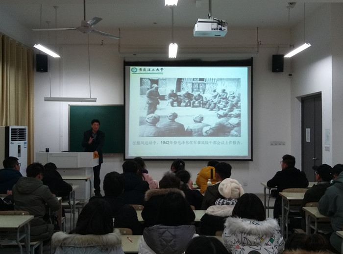 2018年12月28日,马克思主义学院院长孙功教授为实践团学员们带来主题为“图说中国共产党党史”的首场专题辅导报告。孙功以独特的视角、翔实的图片、丰富的党史研究经验,向同学们讲述从1921年党的成立到1978年实行改革开放57年的党史,并与同学们分享交流中国共产党从弱小走向强大经验和启示。学员代表医学院预防17-1班副班长何露丹表示:此次培训让我们从更深入地了解党的成长史、奋斗史、曲折史,认识到如今美好生活是中国共产党带领全国人民不断奋斗的结果,更加坚定我们拥党爱国的决心。
