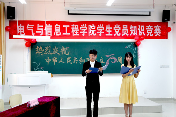 为加深广大青年党员对党的历史、党的知识、党的理论和路线方针的认识,激发爱党爱国热情, 9月29日,学院党委在励行楼C103教室举办党史知识竞赛。学院党委书记夏邦权参加活动并讲话,希望参赛学员以此次竞赛为契机,进一步学党史、知党史,切实增强“四个自信”,争做学习贯彻习近平新时代中国特色社会主义思想的带头人,立志成为合格社会主义事业的建设者和接班人。经过初赛选拔,由7个学生党支部推荐的21名优秀学生党员参加最终决赛。回答自如的必答环节、争分夺秒的抢答环节体现了参赛选手扎实的党史基础,经过激烈的竞赛,本第一党支部参赛选手获得冠军,此次比赛为全院“不忘初心、牢记使命”主题教育营造了浓厚的学习氛围。