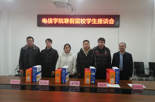 座谈会后,夏邦权、周孟然亲手将学院精心准备的新春礼包送给每一位留校学生。同学们纷纷表示,学院情系学生健康安全、生活冷暖,这样的行动温馨、暖心。