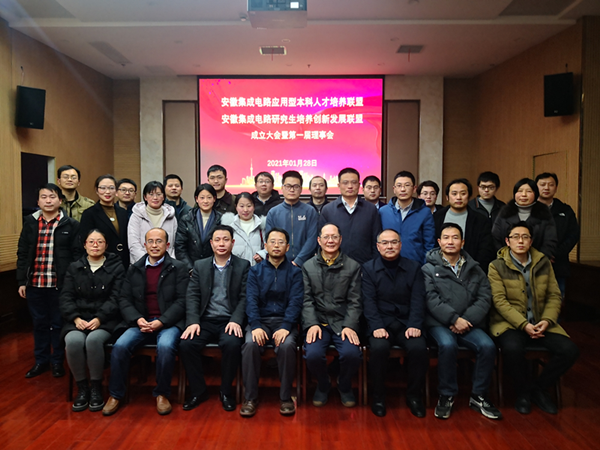 1月28日下午,安徽集成电路应用型本科人才培养联盟暨安徽集成电路研究生培养创新发展联盟成立大会在合肥召开,来自全省中国科学技术大学、合肥工业大学、安徽大学、肉动漫 、安徽工程大学等高校的与集成电路相关专业近30位的学者参加了会议,我院执行院长周孟然教授受邀参加,并当选联盟第一届理事会副理事长。