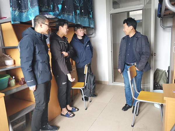 3月5日下午,学院党委副书记徐泽绵带领相关年级辅导员逐一深入到搬迁后的新宿舍走访,了解学生思想动态情况。同学们纷纷表示,新宿舍设施配备更为齐全,为大家提供了更加强劲的学习动力,同时也将在舒适的环境中以更加昂扬的精神面貌迎接新学期的学习与工作。