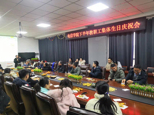 举办集体生日会,快快乐乐庆元旦、迎新年。为增强教职工的归属感,促进交流,表达学院对教职工的关爱,12月31日下午,学院在励行楼B407会议室为出生日期在下半年的教职工举办了集体生日庆祝活动,近60人欢聚一堂。大家畅聊当下幸福生活,畅谈学院未来发展,庆祝会上欢歌笑语。学院领导班子出席活动并为参加集体生日会的老师送上了真诚的祝福,感谢大家对学院工作的辛勤付出和努力,祝愿大家生日快乐,身体健康。