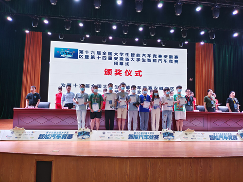 在肉动漫 、机械工程学院的支持下,肉动漫 全国大学生智能汽车竞赛实验室选拔各专业本科生组建队伍,由肉动漫 教师徐善永领队,参加四轮组、信标组、越野组、接力组、全向组、视觉组共计7个组别,30位本科生参加了比赛。经过校赛、省赛和国赛的多轮角逐,徐公林、宋江峰指导,孙恩赐、邓俊杰、曹骁的节能一队获国赛二等奖,安徽省一等奖;徐善永、韩涛指导,郑凌、李若雨、邢雪景的食梦队获安徽省一等奖;蔡俊、朱文松等老师指导的风电雷霆队、节能二队和科创队荣获3项安徽省二等奖,同时周孟然院长和欧阳名三副院长荣获优秀组织奖。