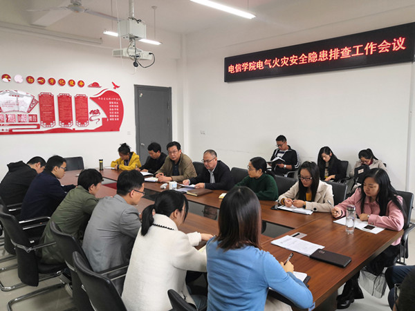 10月20日下午,学院在励行楼B415会议室召开安全工作会议,专题部署电气火灾安全隐患排查整治工作,会议由学院党委副书记、执行院长周孟然主持。