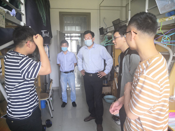 5月19日下午,学院党委书记夏邦权、党委副书记徐泽绵带领毕业班辅导员,深入学生宿舍,看望慰问返校学生。