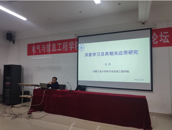 应学院邀请,12月26日下午,安徽工业大学王兵教授来我院作了题为《深度学习及其相关应用研究》的学术报告。会议由学院执行院长周孟然教授主持。学院领导及青年教师,研究生和本科生代表聆听了报告会。