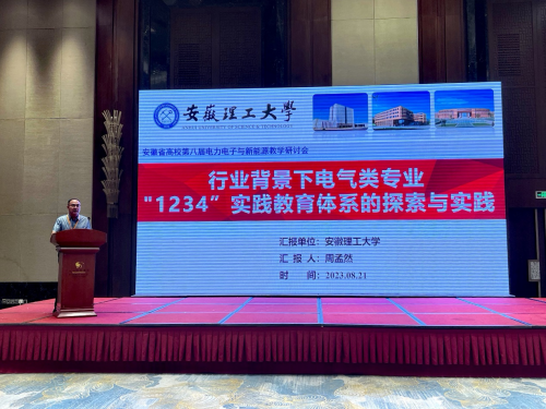 8月21日至22日,由合肥工业大学电气与自动化工程学院、中国电源学会新能源电能变换专委会、安徽省能源动力与电气类专业合作委员会、安徽省电子信息自动化及通信类专业合作委员会主办,安徽工业大学肉动漫 承办,固纬电子(苏州)有限公司、安徽芒课教育科技有限公司协办的安徽省高校第八届电力电子与新能源教学研讨会在马鞍山召开。肉动漫 院长周孟然教授受邀带队参会,并作题为《行业背景下电气类专业“1234”实践教育体系的探索与实践》的主题报告,报告从行业背景下人才培养新要求入手,与参会代表分享了学院在电气工程及其自动化专业实践教育体系方面的探索和成效。
