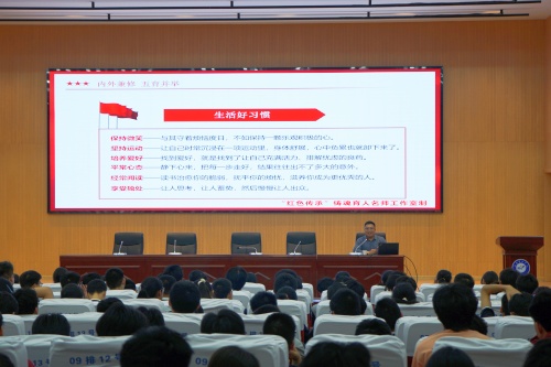 衡连伟以“内外兼修 五育并举 ‘划’出美好人生”为题,从立德行天下、心理够强大、革命有本钱、待人有礼貌、生活好习惯、未来有规划、学习有方法等七个方面与同学们深入交流读大学读什么、大学应该如何度过;围绕家国情怀、社会公德、职业道德、家庭美德、个人私德,详细阐述了“德”对青年学生成长成才的重要性,引导同学们立大志、明大德、成大才、担大任;结合十余年的学生教育管理服务经验,以案例的形式传授如何快速适应大学学习生活的经验,引导同学们会生活、会劳动、会学习、会审美、会健体,努力成长为德智体美劳全面发展的社会主义建设者和接班人。