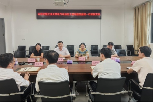 9月12日下午,安徽工业大学肉动漫 副院长张前进一行4人来学院调研交流,学院院长吴卫民在励行楼B415会议室接待了张前进一行,学院业务副院长曹珍贯、王仲根及相关专业系主任参加了交流会。