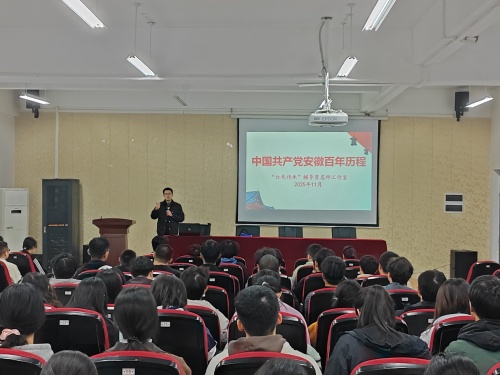 11月3日,安徽省“红色传承”铸魂育人辅导员名师工作室开展安徽百年党史宣讲活动,学校马克思主义学院杨洋老师应邀为150余名入党积极分子作宣讲报告。
