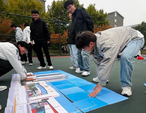 校园地图服务系统“云游”学校的整体面貌。活动中,每个班级分成若干小组,每个小组派代表随机抽取拼图套装,同学们根据散装拼图模块竞猜建筑名称、学习建筑背后的校史故事;一块拼图犹如一把钥匙,带领大家解锁安理建筑的独特魅力,同学们在拼接的过程中不仅熟悉了校园环境、学习了校史,也对“团结、奋进、博学、奉献”的校训有了更加深入地理解,更在分工协作中强化了沟通与默契。
