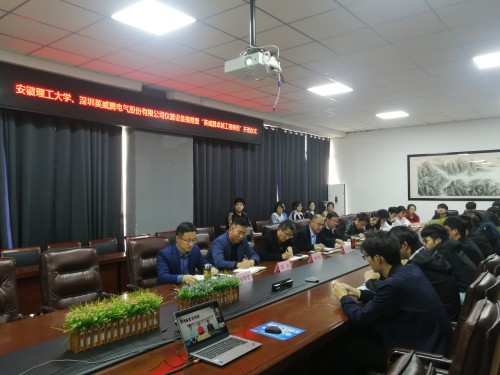 杨林副总裁首先感谢母校的培养和支持,并介绍了深圳市英威腾电气股份有限公司的发展历程、业务板块、现阶段的人才需求等情况,表示公司将一如既往的支持母校的发展。周涛感谢学院领导对本次校企合作的大力支持,介绍了本次设备捐赠、“英威腾卓越工程师班“教学安排及奖学金设置情况,并鼓励同学们勤奋学习、不断进取。朱汉行欢迎更多的安理学子加入英威腾这个大家庭。